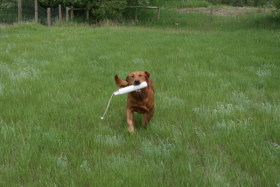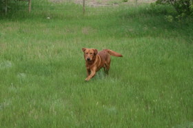 Kane is a fox red male weighing 65lb. He is very muscular and athletic and has nice bone structure. Kane comes from exceptional field trial and hunt test lines from the USA. He is a very intelligent dog who learns quickly. His great people focus and willingness to work make him both easy and fun to train. He has tremendous retrieving drive, a soft mouth, and is very fast, agile, and stylish in the field. He is a gentle dog and gets along great with children and other dogs. In the Field, Kane has his Working Certificate Excellent Title and his Master Hunter title. In early 2011 Kane received his CD title in competition obedience by passing 4 straight trials with 4 High in Class placings and 1 High in Trial with scores of 195-197 out of a possible score of 200. In the spring of 2012 Kane completed his CDX title in obedience with several High in Class scores. He will work towards his last level of competitive obedience this coming year.