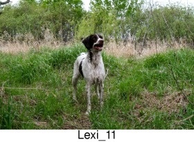 Lexi is a larger female who is 38lb, tall, and very athletic. She was born at Prairiestorm Kennels and is from a breeding between our dogs Spark and Briar. We couldn't decide which female we wanted to keep from that litter so we ended up keeping both Lexi and her sister Blaze. Lexi lives with our good friends Ken and Judy Taylor where she is very loved and well taken care of. We couldn't ask for a better home for her. Lexi is a family pet and also a hunting dog where she enjoys hunting grouse with Ken each fall. She has high retrieving drive and loves to hunt. Lexi finished her Canadian Conformation Championship(CH) and did very well in the show ring. She has a very nice gait and a beautiful and long neck. She is a very spirited dog and is always happy and enjoying life. Lexi is very outgoing, loves people, and is great with children and other dogs. Her puppies will be well suited for active family pet, hunting dogs, conformation dogs, or agility homes.